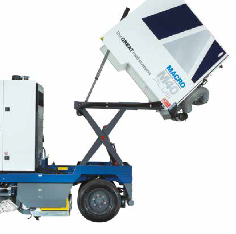 La MACRO M40 es una barredora de última generación, concebida para limpiar y diseñada para el beneficio. Es valorada por su comodidad, facilidad de uso, seguridad y gran maniobrabilidad. El confort en la cabina es ideal para los turnos largos. Además, es potente y robusta. Su sólida estructura y el sistema de barrido por aspiración mecánica filtrada la hacen adecuada para todas las condiciones de limpieza: desde avenidas ajardinadas hasta fábricas de cemento; desde aeropuertos hasta zonas desérticas; desde industrias mineras hasta comercios locales.