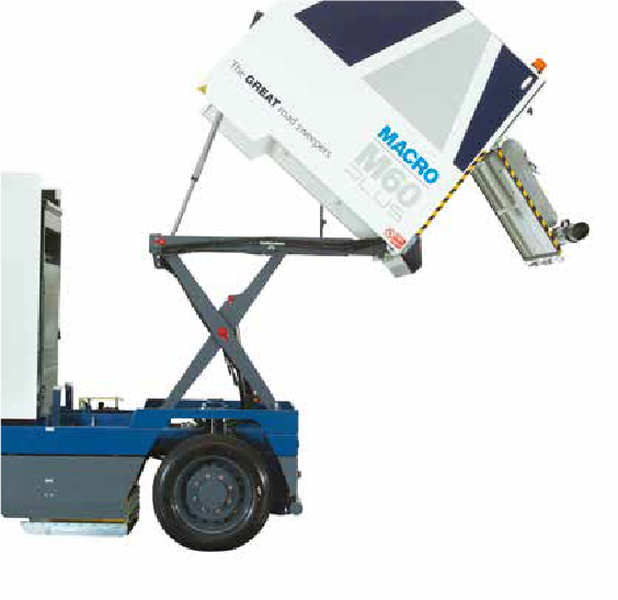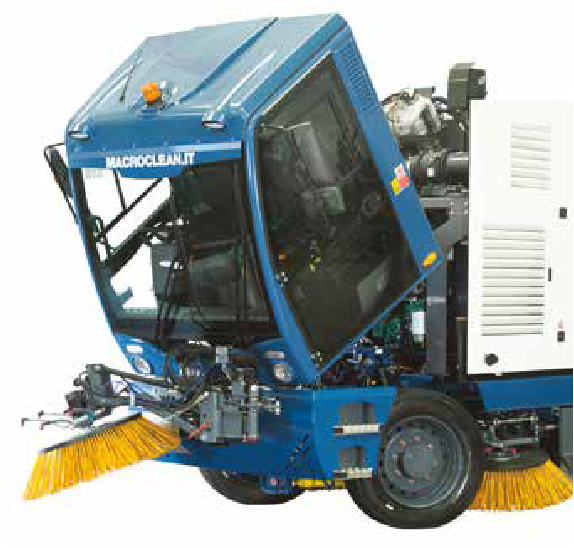 Su sólida estructura y el sistema de barrido de arrastre y aspiración filtrada se adapta a todas las condiciones de limpieza: desde avenidas hasta minas; de puertos a desiertos; de cementeras a mercados de abasto. La tolva de 6 metros cúbicos y la carga de 6 toneladas se han concebido para la recogida de materiales muy pesados y voluminosos.